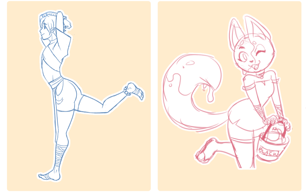 All commissions go through a sketching phase where an initial sketch based on provided reference(s) is given. More complex commissions may offer several initial sketches for commissioner approval. From there, the initial sketch is updated with any necessary details for final approval. Upon final approval by commissioner and full payment of commission costs, the commission proceeds to completion.